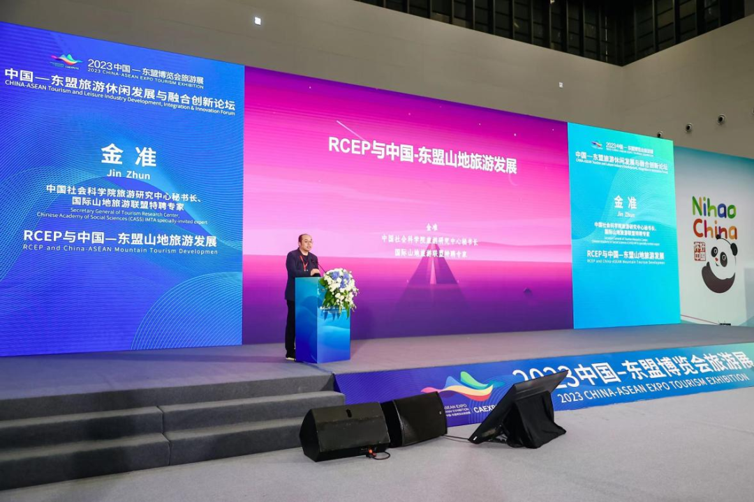 On the China-ASEAN Tourism and Leisure Development and Integration Innovation Forum, Professor Jin Zhun, Secretary General of Tourism Research Center of the Chinese Academy of Social Sciences and expert of International Mountain Tourism Alliance, made a keynote speech titled "RCEP and China-ASEAN Mountain Tourism Development" on behalf of the International Mountain Tourism Alliance. Based on the results of the "Mountain Tourism Cooperation and Development Report under the Framework of RCEP" jointly prepared by the Alliance and the Chinese Academy of Social Sciences, this speech further elaborated the resource advantages and broad prospects of China-ASEAN mountain tourism cooperation and joint construction under the background of RCEP. In the process of implementing this vision, the Alliance will play an increasingly important role.As the only international organization oriented to mountain tourism in the world, the International Mountain Tourism Alliance is responsible for promoting sustainable mountain tourism. It is willing to work together with China-ASEAN tourism operators to create and shape the high-quality development of future-oriented tourism industrialization.