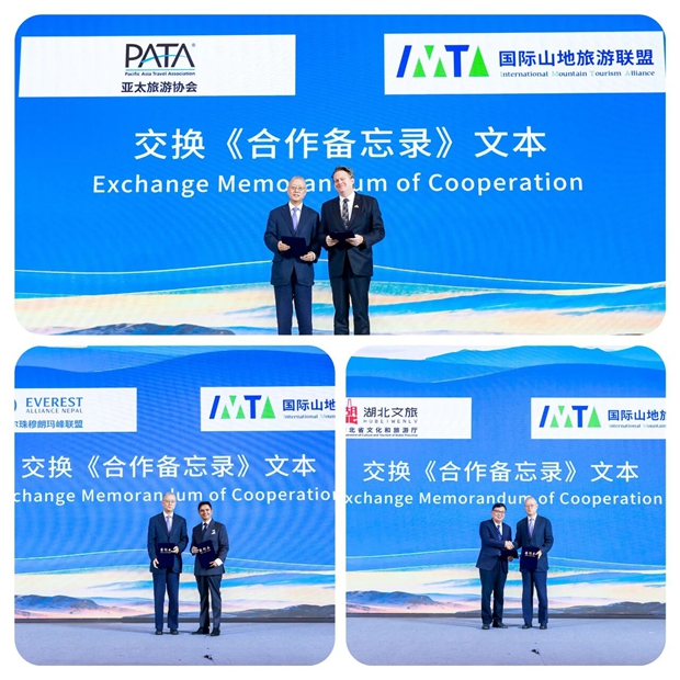 He Yafei exchanged Memoranda of Cooperation (MoC) with Peter Semone, PATA Chairman; Sudarshan Nepal, President of the Everest Alliance Nepal; and Xu Yong, Deputy Director-General of the Department of Culture and Tourism of Hubei Province. These exchanges aim to inject new momentum into the sustainable growth of the global tourism industry and contribute practical strength through resource sharing and mutual learning of advantages.